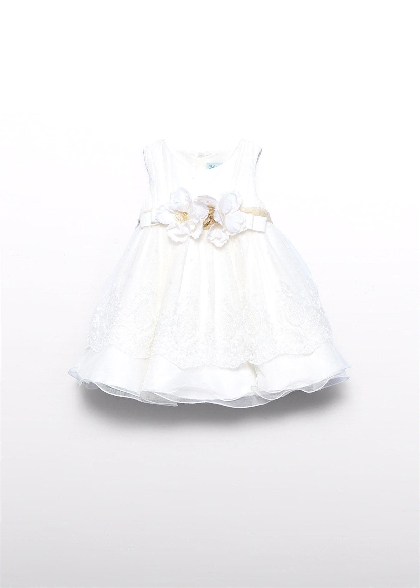 Abel&Lula Kız Bebek İşlemeli Tül Elbise Krem 5004