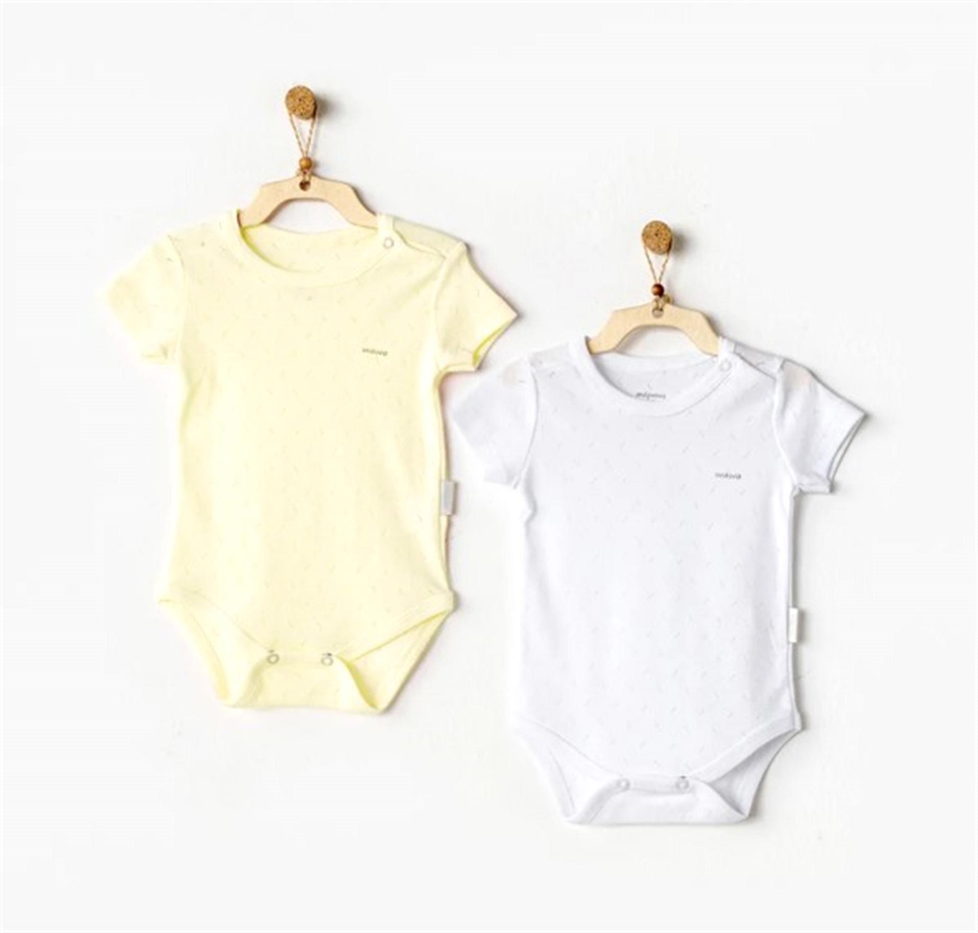 Andywawa Bebek Yarım Kollu 2'li Basic Body Sarı-Beyaz AC25554