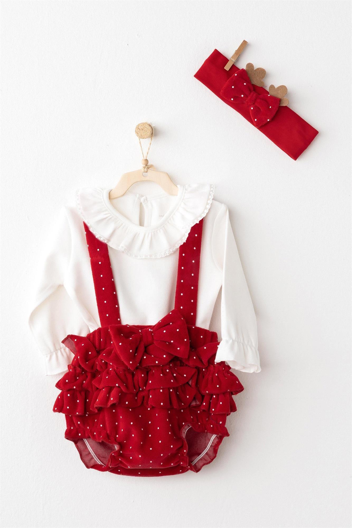 Andywawa Kız Bebek Party Saç Bantlı 3'lü Tulum Takım Kırmızı AC26314