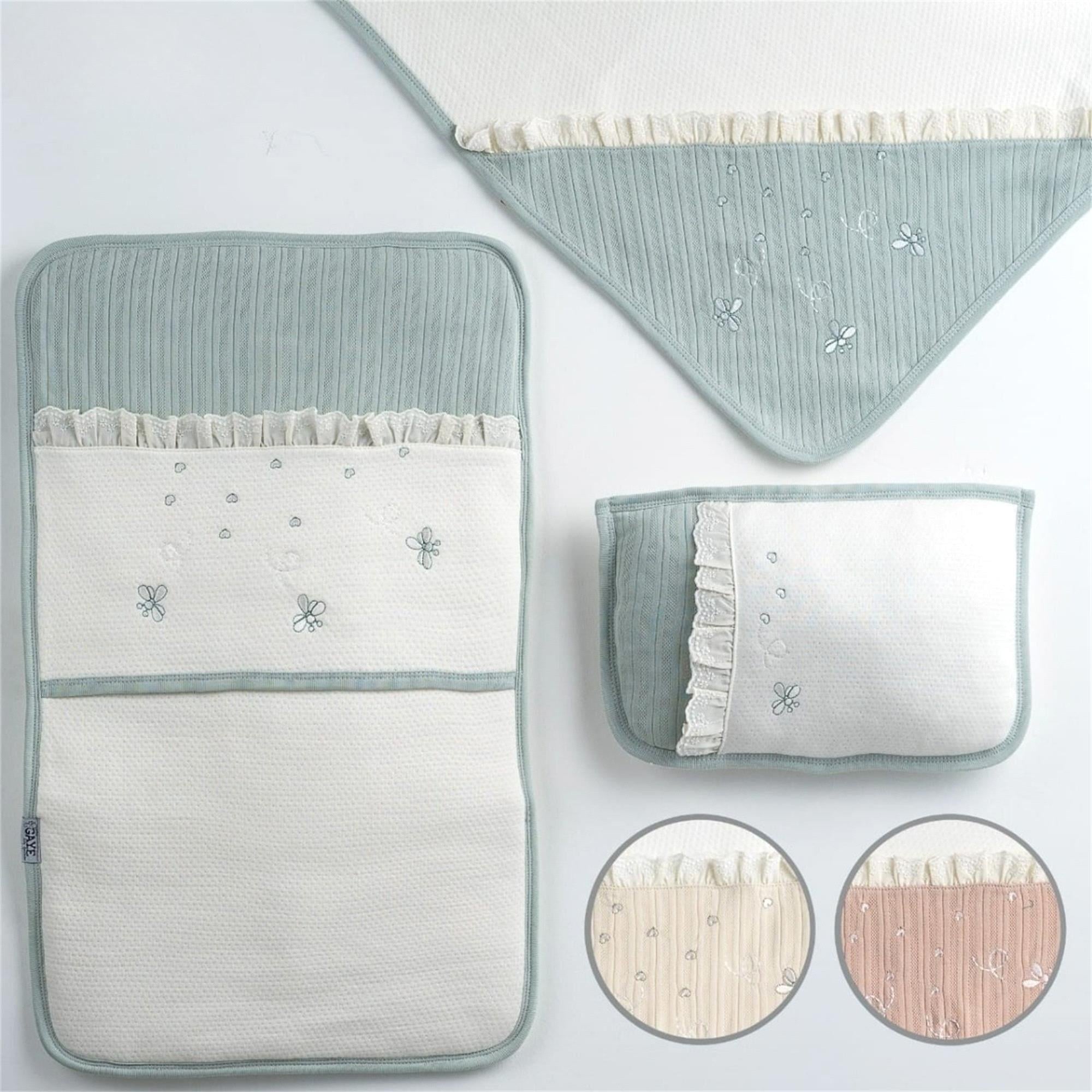 Gaye Bebe Kız Bebek İşlemeli 3'lü Alt Açma Seti Mint 1501