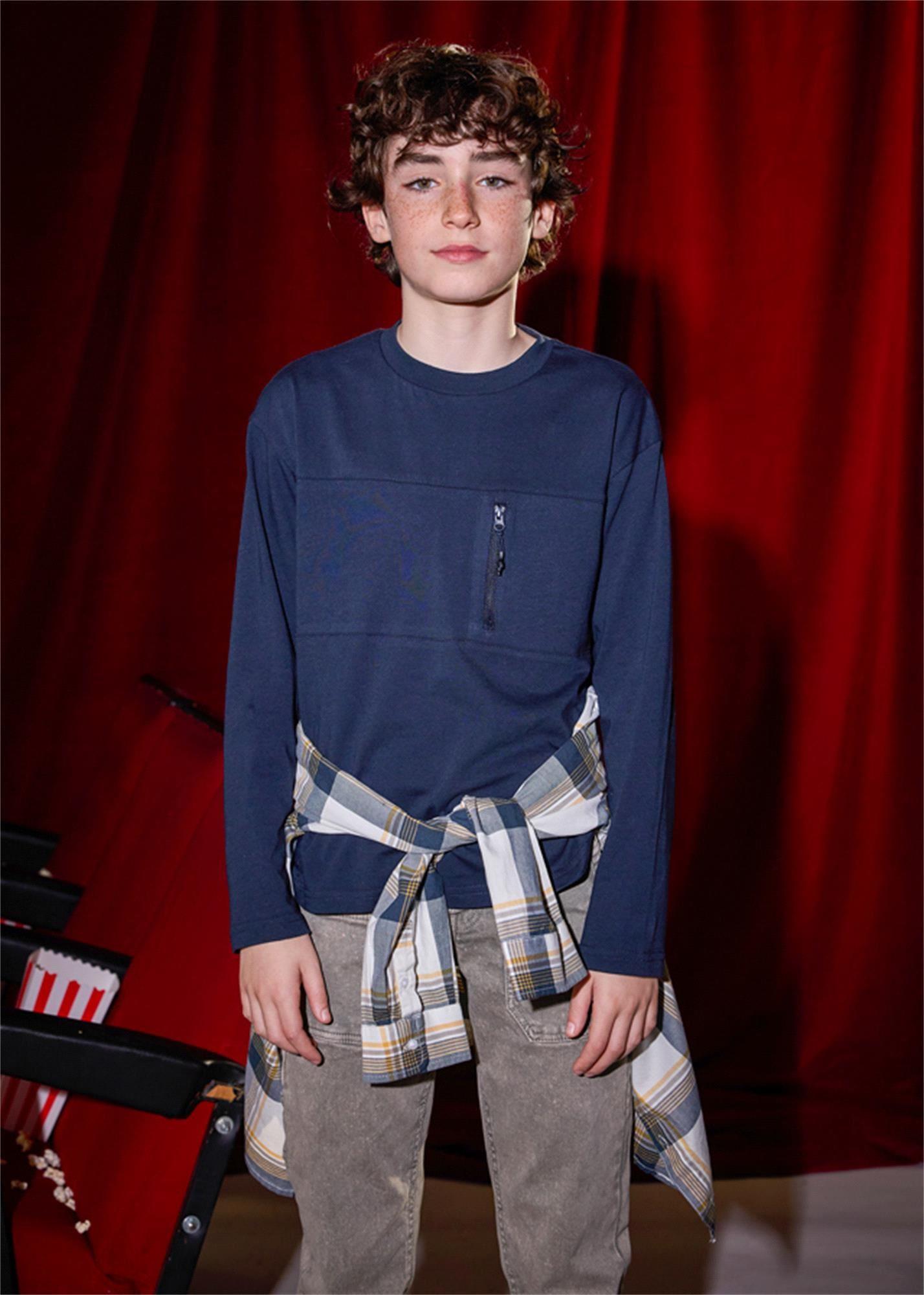 Mayoral Erkek Çocuk Cepli Uzun Kollu Tişört Lacivert 7009