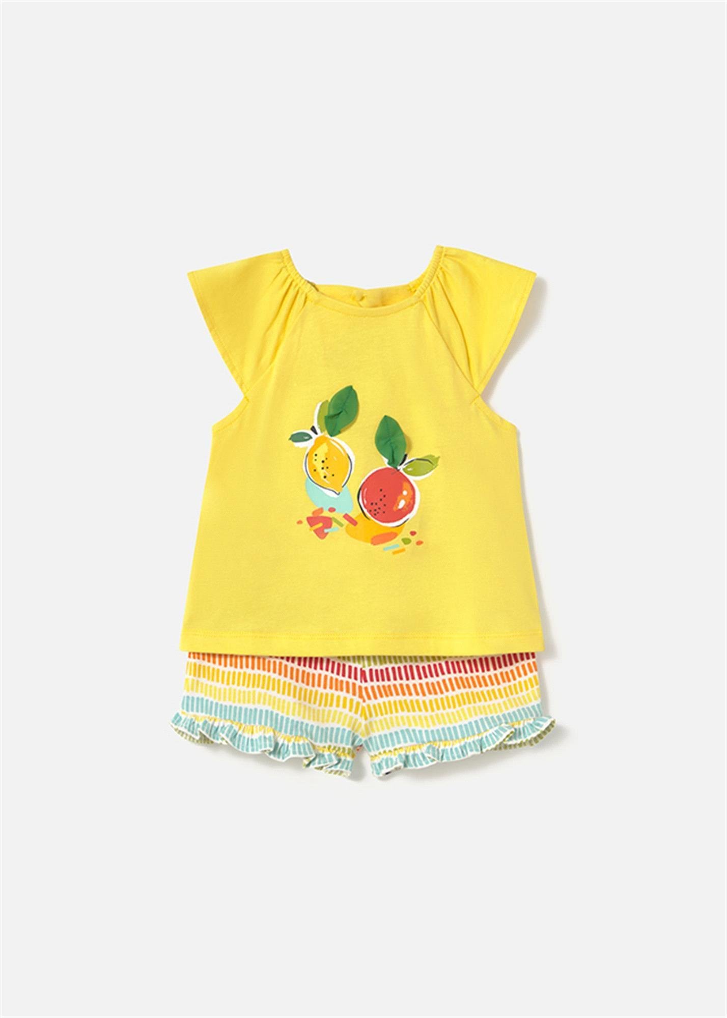 Mayoral Kız Bebek Baskılı Tişört Şort Takım Sarı 1233