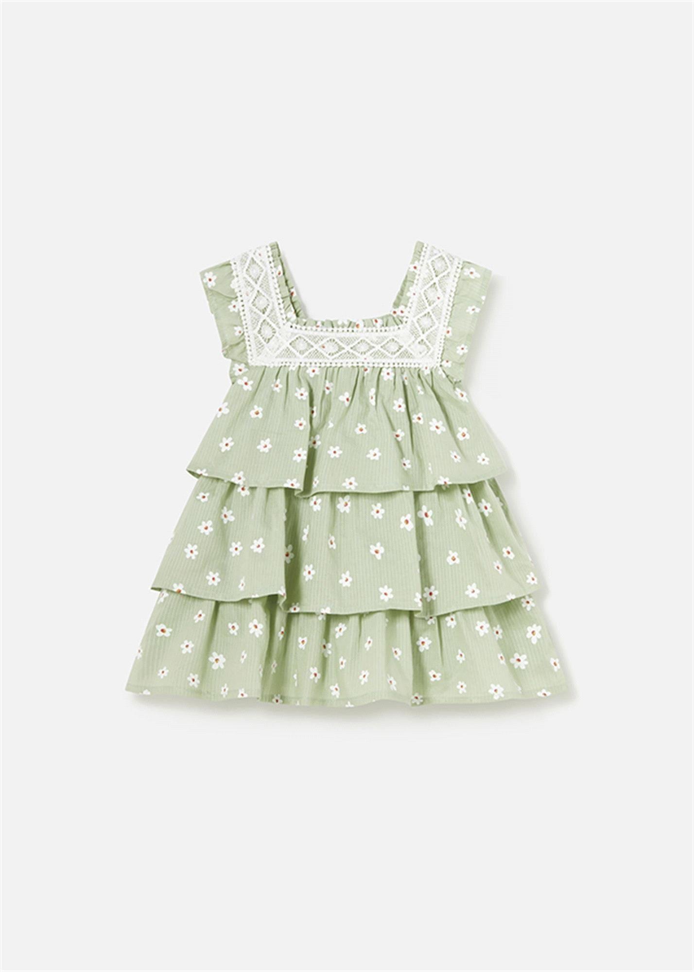 Mayoral Kız Bebek Çiçek Baskılı Fırfırlı Elbise Yeşil 1922
