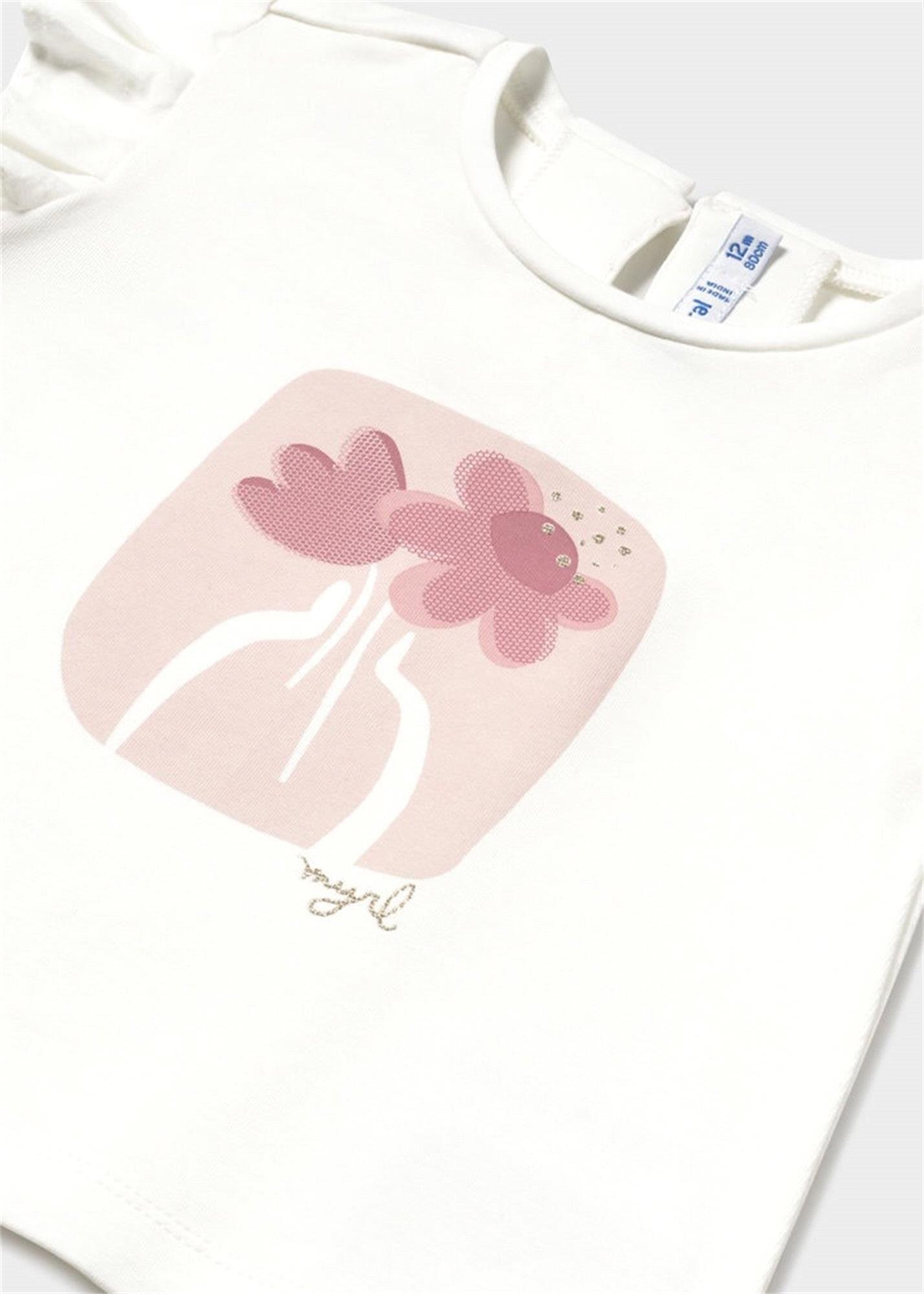 Mayoral Kız Bebek Fırfır Kollu Çiçekli Tişört Beyaz 1042