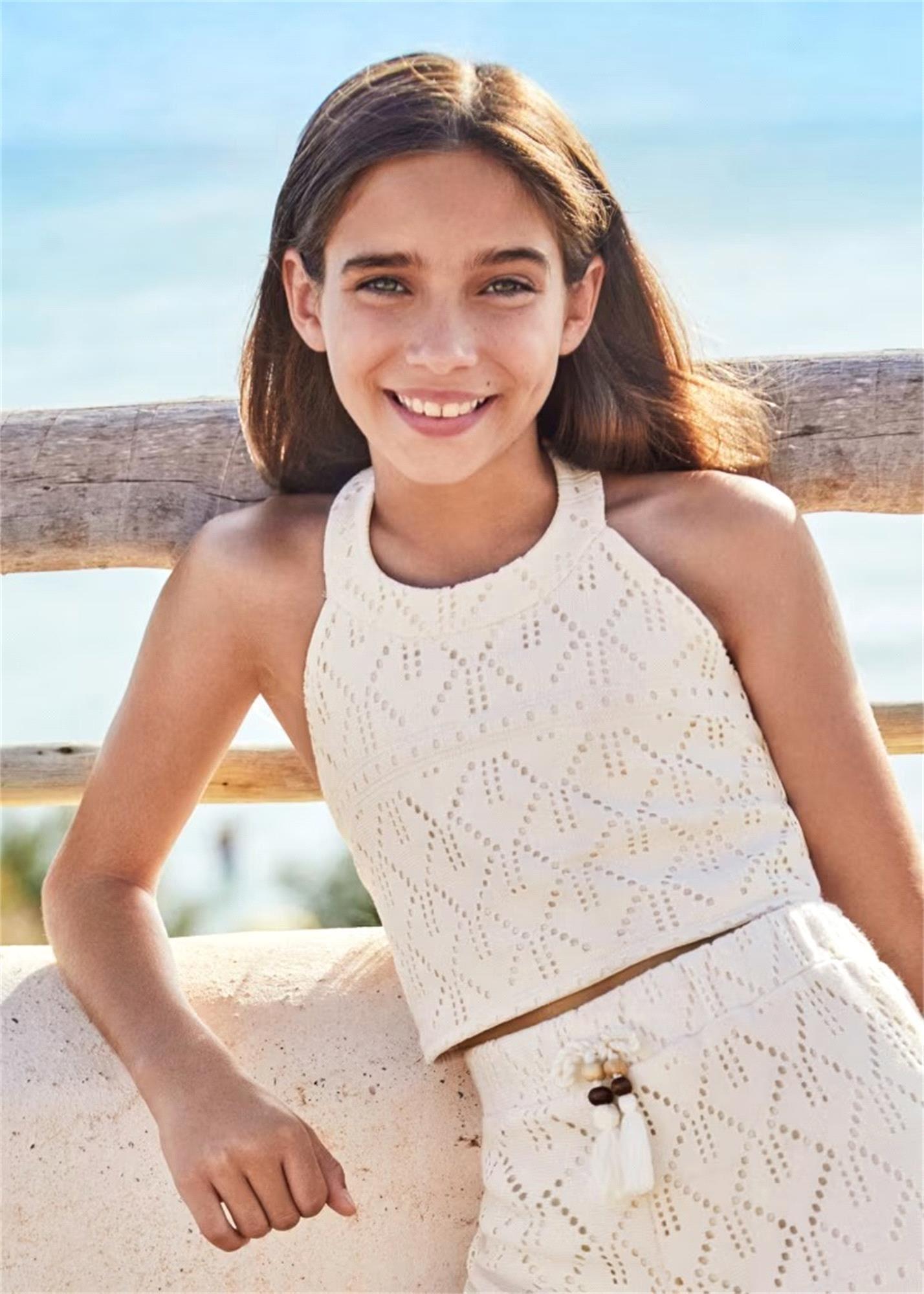 Mayoral Kız Çocuk Boyundan Bağlamalı Kolsuz Bluz Krem 6025
