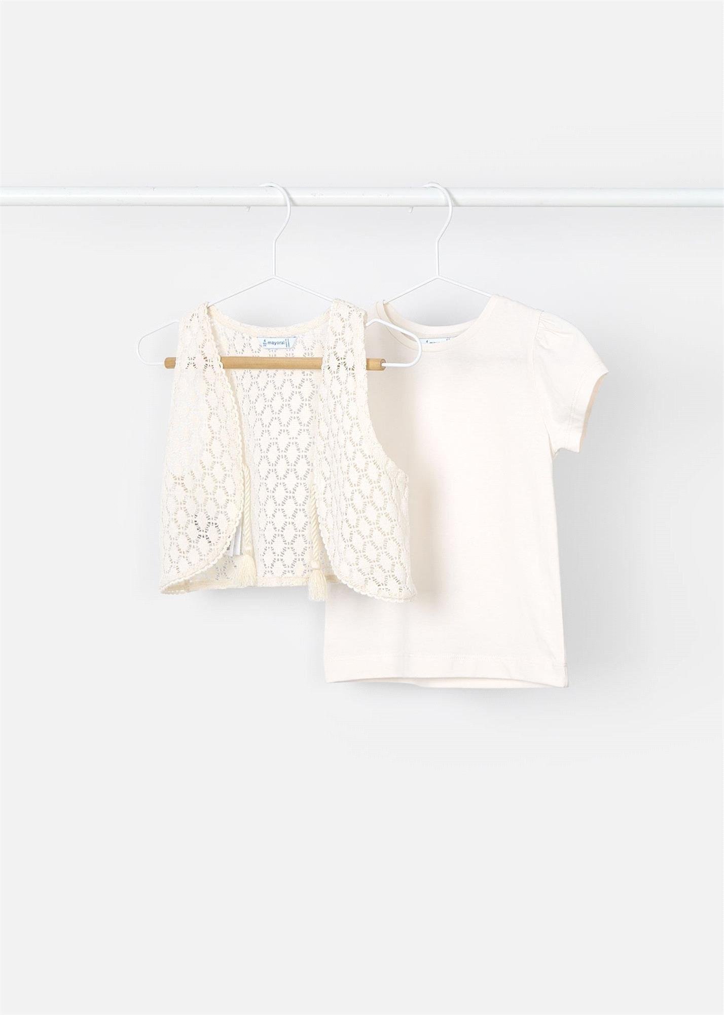 Mayoral Kız Çocuk Yelekli Tişört Set Krem 3007
