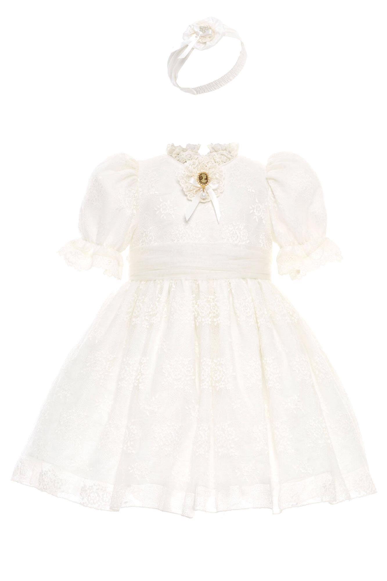 Pamina Kız Bebek Bandanalı Dantelli Elbise Ekru 36315