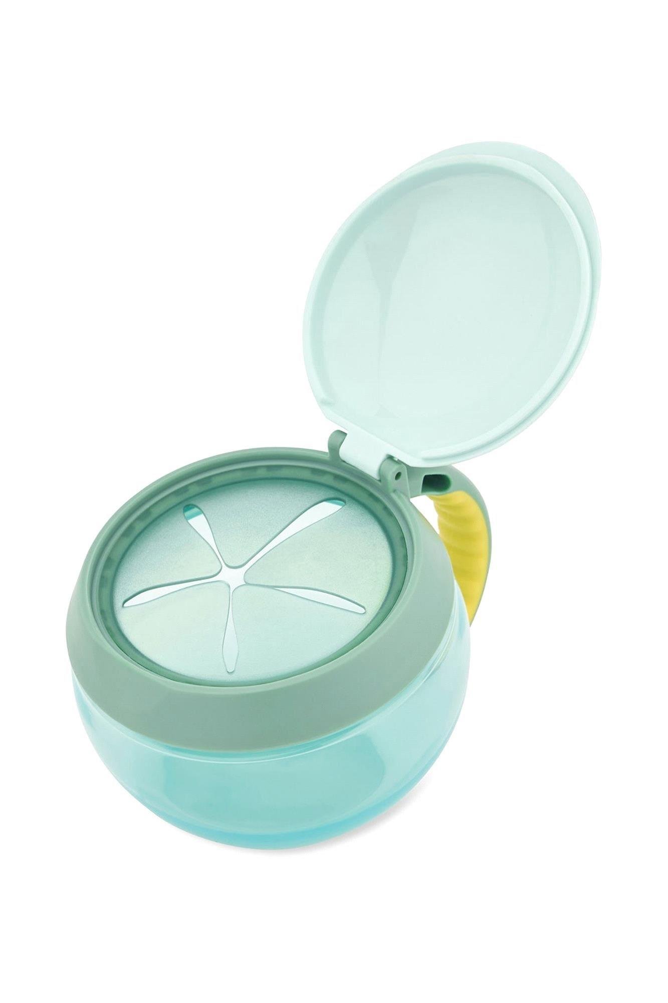 Çıtır çıtır atıştırmalıklar için mükemmel olan bu sevimli çerez kabı, etrafı kirletmeden bağımsız olarak atıştırmayı teşvik eder. Kolay kavranan sapı, küçük eller için en ideal boyuttadır ve üst kapak, yiyeceklerin taze kalmasını sağlar. Esnek iç ağız, kabınız devrilse bile atıştırmalıkların dışarı dökülmesini engeller. İki kapakla daha az dağınıklık olur ve annenin çantası kırıntısız kalır!