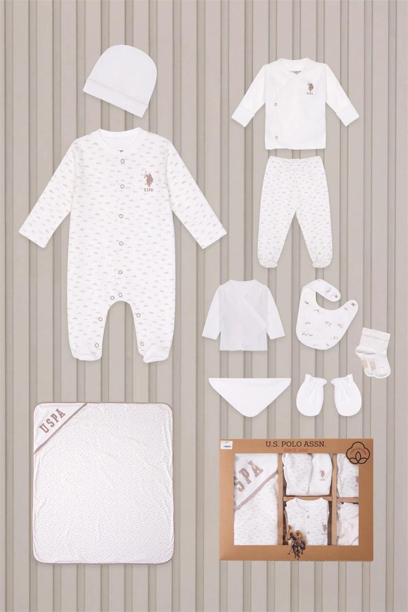U.S. Polo Assn Erkek Bebek 10'lu Hastane Çıkış Seti Krem USB2021