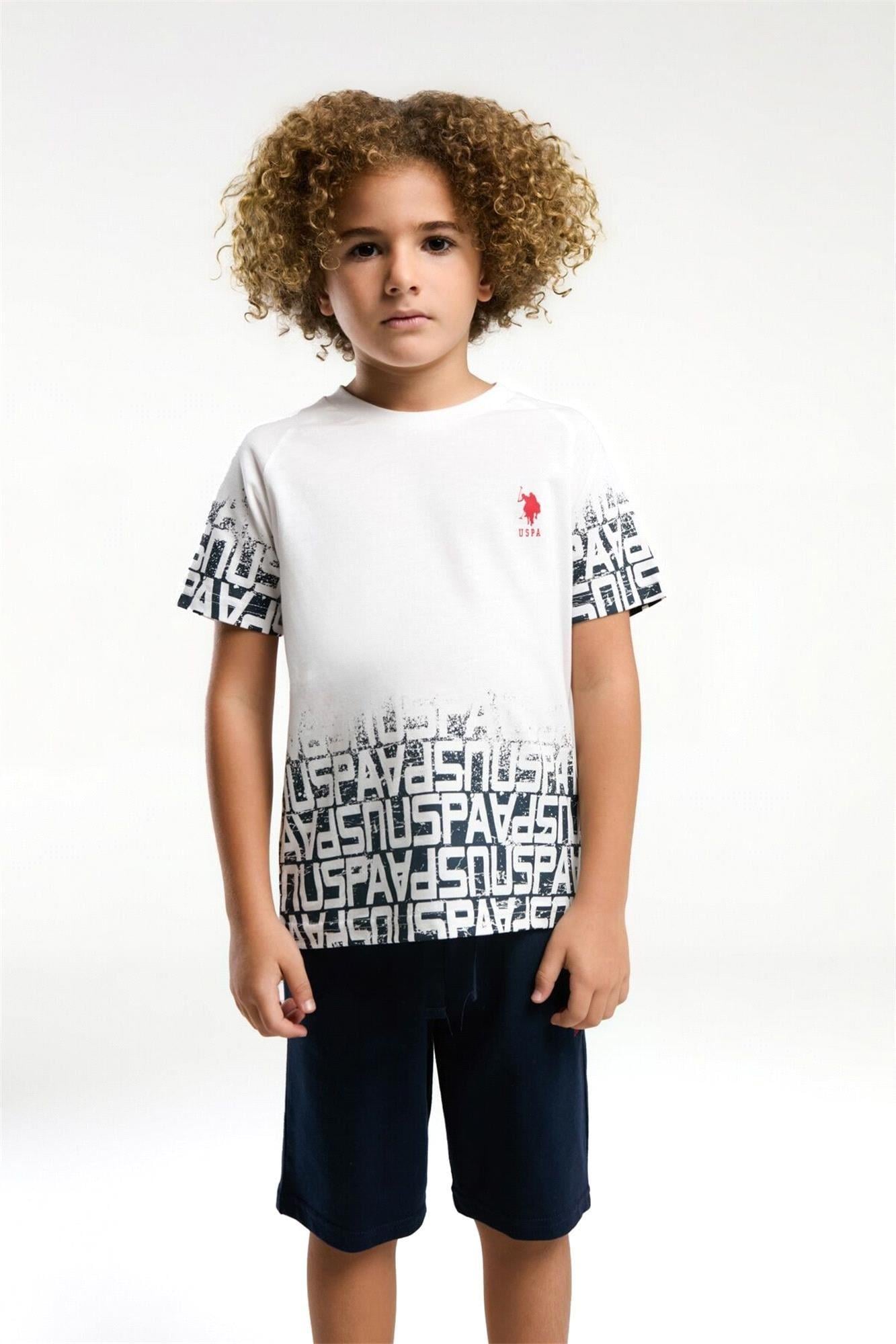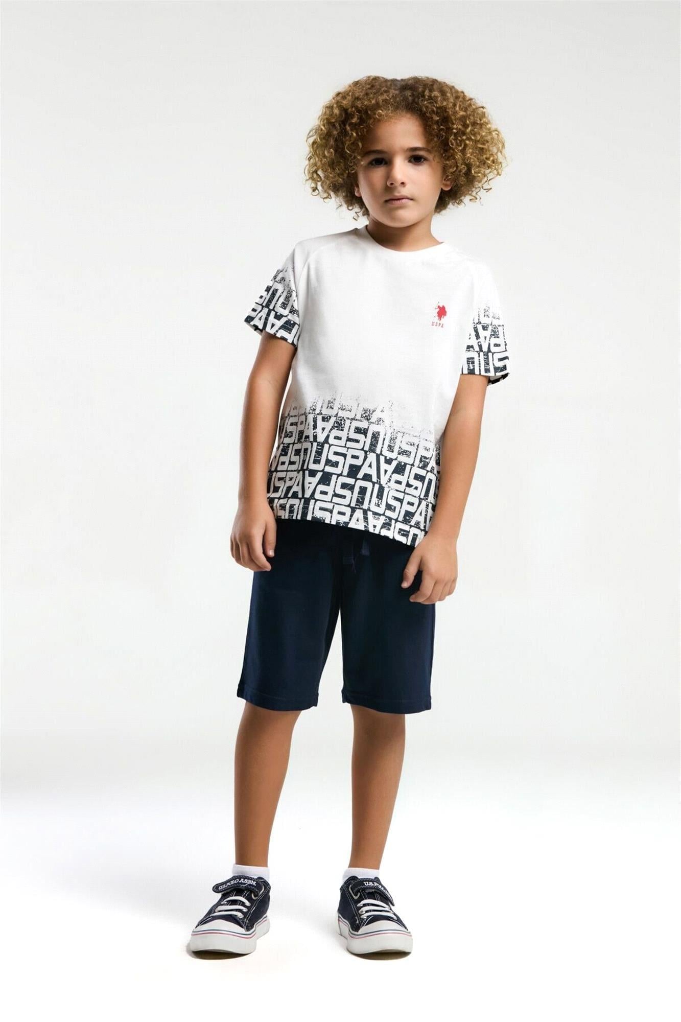 U.S. Polo Assn. Erkek Çocuk Bermuda Tişört Şort Takım Beyaz US2057-4