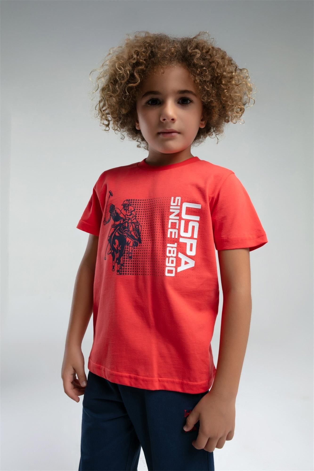 U.S. Polo Assn. Erkek Çocuk Bermuda Tişört Şort Takım Nar Çiçeği US2025-4