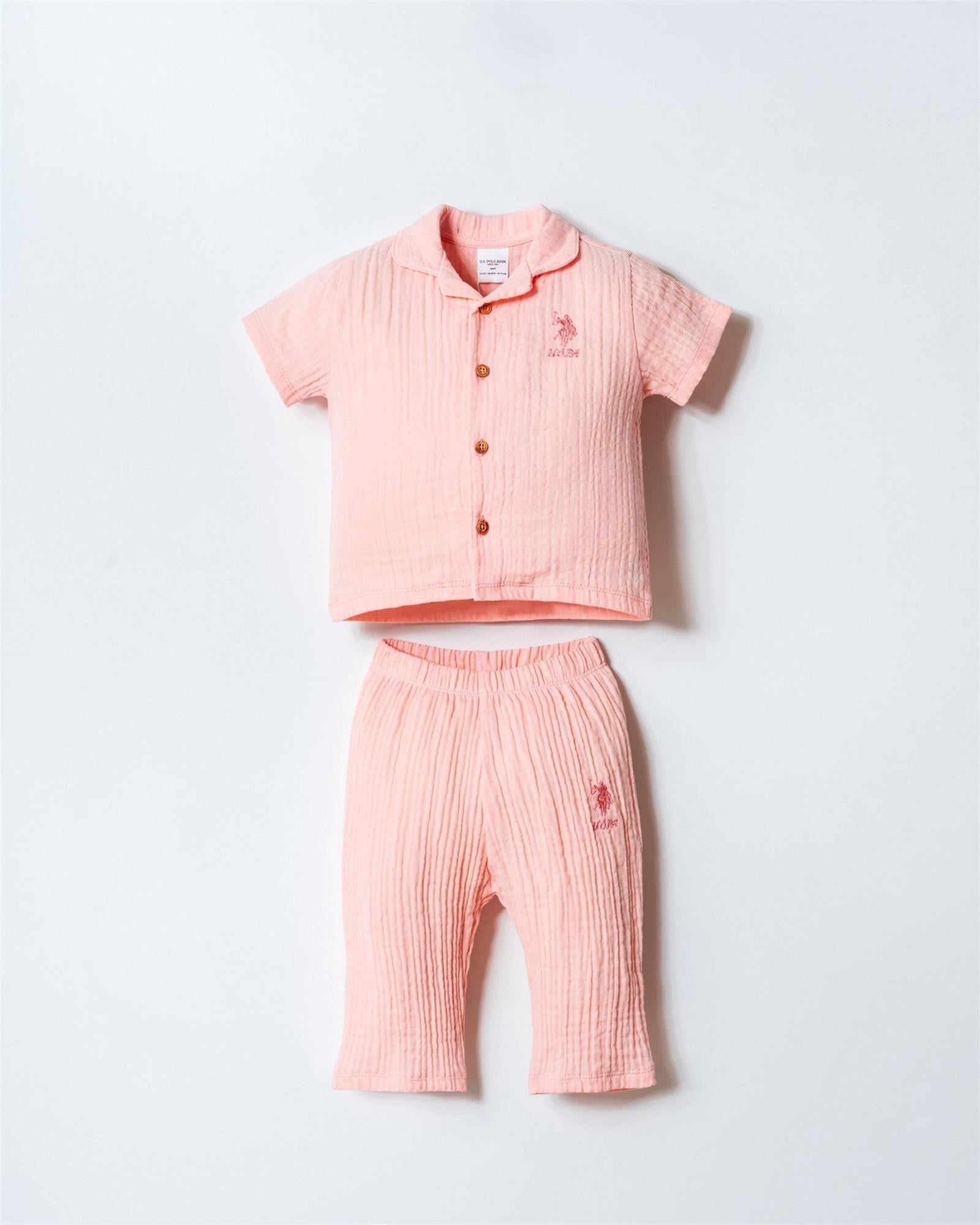 U.S. Polo Assn. Kız Bebek Müslin Gömlek Pijama Takımı Pudra USB2978